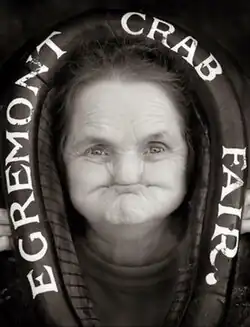 Woods first started gurning in 1977, when her sons entered her into the competition at the Egremont Crab Fair as a joke.[5] Her first victory came as a surprise to both Anne and her husband Alex, who started gurning himself more than 20 years later.[5] Since her debut, she missed only one competition when she was pregnant with her daughter.[1] Woods became a local community favourite, and as her subsequent successes were covered by the media, she was credited with putting Egremont "on the map".[6][1] In his 2004 book True Brits, journalist J. R. Daeschner described Woods as a "diminutive, grey-headed granny" whose face normally had "a certain sweetness etched with the wrinkles from a lifetime of smoking", but that when she gurned, she transformed herself into "a crater-faced hag".[5]