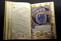 This work, produced probably before 1525, is the major reason for Anne de Graville's inclusion in the history of French literature.[9] The collection of seventy-one rondeaux was revised from the poem originally written one hundred years earlier by Alain Chartier (in 1424), updating the narrative and neutral octosyllabic form of Alain’s poem to a lyrical and courtly form of rondeaux.[10] The text of the poems are preserved in a single manuscript housed at the French National Library (Bibliothèque nationale de France) in Paris with the shelf mark of français 2253. The dialogue between Lover and Lady reflects a softening of the attitude of the Lady toward her pleading courtier, rendering it more acceptable to a Renaissance audience.[10] A modern edition was published by Carl Wahlund in 1897.[11]