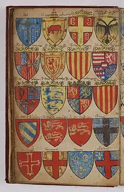 Page 5 of the Armorial Le Breton owned by Anne - The Armorial Le Breton, the oldest illustrated armorial preserved in France.