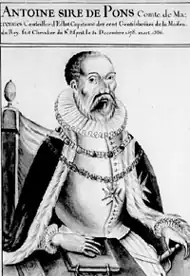Parthenay married Antoine de Pons (Anthony de Pons), the Comte de Marennes, who served at the court of Ferrara in 1534.[3][4] They met and married at Ferrara.[4] Antoine was a royal military and political agent for the French in northern Italy. He regularly visited the court of Ferrara.[4]