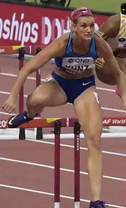 Annie Elizabeth Kunz (born February 16, 1993) is an American track and field athlete who specializes in heptathlon.[1][2] She represented United States of America at the Tokyo Olympics, 2019 World Athletics Championships, 2019 Pan American Games and two Thorpe Cups competing in women's heptathlon.[3] She also played soccer in college for Texas A&M.