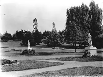 ![]() The statues at Wright Park Arboretum's west entrance c. 1910 | |