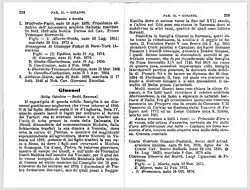 In addition to minor variations in the various subsequent editions up to the 17th, beginning with the 1892 edition - when Goffredo di Crollalanza took over the editorship of the periodical - it was decided to clarify some historical references to certain families: The editor himself, in the introduction of that year's edition, dissociated himself from some historical references to families considered noble, published in articles or supplements of the Giornale Araldico Genealogico Diplomatico Italiano, founded by Giovan Battista di Crollalanza, because he considered that they no longer met the criteria of scientificity and historical criticism.[2] From the XXVI edition of 1904, the work is subdivided as follows: