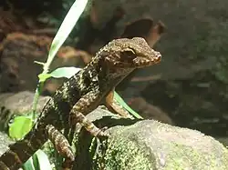 Anolis gundlachi, also commonly known as the yellow-chinned anole, Gundlach's anole, and the yellow-beard anole, is an oviparous, sexually dimorphic species of lizard in the family Dactyloidae. The species is endemic to Puerto Rico and lives in mountainous forests at high elevations.[2] The diet of A. gundlachi consists mostly of insects. This species is also known for signaling other lizards through a modulated head bob display, with varying bobbing amplitudes and patterns based on an individual's distance from other lizards.
