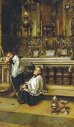 Anselmo Gianfanti (28 September 1857–11 January 1907) was an Italian painter known for depiction of genre subjects and portraits. He was born in Montiano, a comune near the city of Cesena.[1] He was a pupil of Domenico Morelli. He painted the Benedicamus Domini in the National Gallery of Modern Art in Rome.[2] He also painted a Frati miniatore and various portraits.