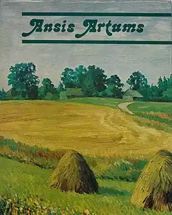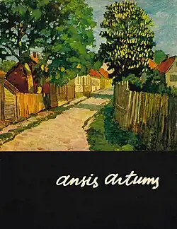 Ansis Artums (January 15, 1908 – January 13, 1997) was a Latvian landscape painter and master of still life, who worked in oil painting technique. He spent most of his life in Tukums. Artums is most widely known for his paintings of spring and summer landscapes, blooming gardens, flower vases, landscapes of Tukums, blooming chestnut trees, lilacs, and fritillaries.