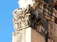Right image: Corinthian anta capital at the Niha Bekaa Roman Temple, 1st century AD.