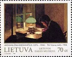 Painting All Through the Night by Žmuidzinavičius on a postal stamp issued in 1998