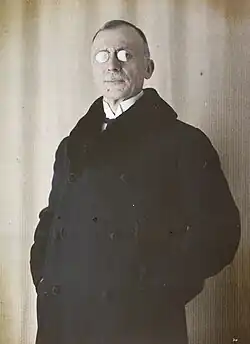 In spite of his support for a united Yugoslavia, Trumbić opposed the 1921 constitution over his belief that it was too centralized and allowed Serb hegemony over Yugoslavia.[1] Trumbić was one of 35 representatives to vote against the constitution amid a wide boycott of the National Assembly by opposition parties.[2] Trumbić grew steadily disillusioned with the Yugoslav government over time which he saw as Serb-dominated.[1] He was elected for the last time in the 1927 elections on the list of the Croatian Bloc representing Zagreb together with Ante Pavelić (1869–1938).