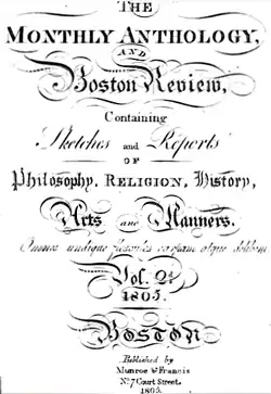 - ^ Journal of the Proceedings of the Society (1910), which conducts the Monthly anthology and Boston review, October 3, 1805, to July 2, 1811. Boston: Boston Athenaeum. Includes essay by M.A. DeWolfe Howe.