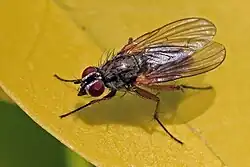 Some species are commonly called "root-maggots", as the larvae are found in the stems and roots of various plants. As larvae, some also feed on decaying plant material. The well-known grey "seaweed flies" or "kelp flies" (Fucellia) are examples.[2] Others are scavengers in such places as birds' nests; yet other species are leaf miners; the family also includes inquilines, commensals, and parasitic larvae.