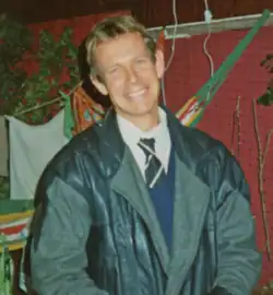 ![]() Aikman at the book launch for The Eye of Itza, 1986 | |