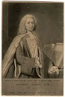 - ^ a b c d e f g h i j k l m n o p q William Munk. "Anthony Askew". Royal College of Physicians of London. Retrieved 15 June 2013.