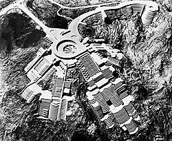 DMJM had hired Pelli and Lumsden to break with orthodox Modernism, but keeping in mind stringent time and money constraints, and working for many clients who were ambivalent about architectural design. Pelli and Lumsden still delivered. One of their first collaborations, Sunset Mountain Park (1966), was a hyper-tech megastructure proposed for the Santa Monica Mountains with an urban nucleus and housing for 7,200 that somehow still acknowledged City of Los Angeles open space ordinances. The project won the Progressive Architecture First Design Award in 1966.