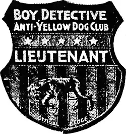 The Anti-Yellow Dog Clubs (also referred to as The Yellow Dog Clubbers Club)[1] were American anti-seditionist clubs during World War I inspired by Henry Irving Dodge's story "The Yellow Dog",[2] which first appeared in The Saturday Evening Post on March 4, 1918. Members of these clubs (largely schoolboys) wielded the story's definition ("If a man talks against the government and can't back up what he says, he's a 'yellow dog'.")[3] on their quest to confront "yellow dogs". There were thousands of these clubs across the US, and they were the target of both support[4] and scorn.[5] Total membership was in the millions.[6] The clubs were endorsed by political figures including Theodore Roosevelt. [7] They were promoted in concert with both the book edition of the story and its movie adaptation. Movie theater owners started promoting the clubs before production on the film had even started, as an advance publicity campaign.[8]