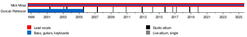 - Mick Moss – lead vocals, acoustic solo & electric guitar, bass guitar, keyboards and samples, orchestral arr., producer (1998–present)