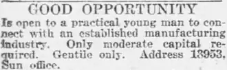 During the early to mid 1900s, many white Christian neighborhoods in Baltimore and the suburbs of Baltimore County and Montgomery County used restrictive religious and racial covenants to exclude Jewish people and other non-Christian and/or non-white people from owning homes. Antisemitic covenants and quotas were used to exclude Jews from Baltimore's Roland Park as well as several communities in Montgomery County, including Kensington, Chevy Chase, Potomac, and Bethesda. A typical antisemitic covenant in Kensington's Rock Creek Hills dating to 1946 reads that no property "shall never be used or occupied by...negroes or any person or persons, of negro blood or extraction, or to any person of the Semitic Race, blood or origin, or Jews, Armenians, Hebrews, Persians, and Syrians, except...partial occupancy of the premises by domestic servants."[3] The real estate developer James W. Rouse used antisemitic quotas when building in the affluent and predominantly white Christian neighborhood of Roland Park. In 1951, Rouse enforced a quota of no more than 12% Jewish residents for the Maryland Apartment in north Baltimore until 75% of the apartments were rented.[4][5] During the 1940s, the Jewish real estate developer Joseph Meyerhoff refused to rent or sell to fellow Jewish people in Roland Park in Baltimore. In 1948, the Baltimore Jewish Council wrote Meyerhoff a formal letter denouncing his complicity in antisemitic real estate practices and requested that he show solidarity with the Jewish community, but Meyerhoff insisted that his career would be ruined if he sold or rented to Jews in non-Jewish neighborhoods.[5]