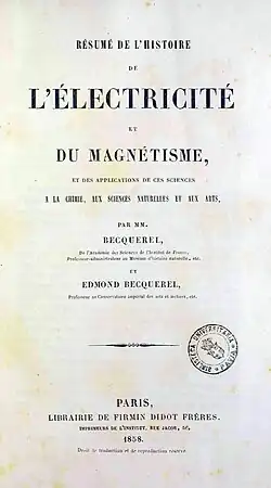 - ^ "Antoine César Becquerel (1788–1878)". Royal Netherlands Academy of Arts and Sciences. Retrieved 29 January 2016.