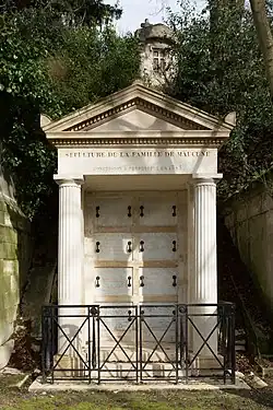 In May 1811, the army was reorganized and Maucune was promoted to lead a division. This started a period of remarkable bad luck. At Salamanca in July 1812, his isolated division was wrecked by a combination of British infantry and cavalry attacks led by Lieutenant-General Stapleton Cotton, (later Viscount Combermere).[1] In June 1813, the British surprised his troops at San Millán de la Cogolla. The division missed the Battle of Vitoria, since he was carrying part of the immense collection of art looted in Spain, but helped fight off the Allied pursuit at Tolosa. His division was scattered at Sorauren in late July 1813 and at the Bidassoa in October. After these defeats, Marshal Jean-de-Dieu Soult replaced him with Jean François Leval. Sent to Italy, he was defeated at the Taro River in April 1814 while defending against three-to-one odds. Maucune is one of the names inscribed under the Arc de Triomphe on Column 35.