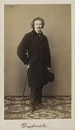 Born in Meissen, Dietrich joined the Dresden Academy of Fine Arts at age 14 and studied sculpture under Ernst Julius Hähnel. In 1848 he made his debut at an exhibition held by the academy. He became a student of the painter Eduard Bendemann in that same year, but a short time later Dietrich moved, together with Leonhard Gey, to work in the studios of Julius Schnorr von Carolsfeld. Despite positive reviews, Dietrich was unable to make a living as a freelance artist, so he also worked as an illustrator for various publishers and art dealers.