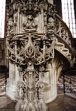 Anton Pilgram (also Anton Pilchramb) (around 1460, Brno (?) – 1516, Vienna) was a late medieval Moravian and subsequently Austrian architect and sculptor active in the area of today's Czech Republic (Moravia), Austria and western (Germany) Swabia. Pilgram is known as the sculptor of the portal of Old City Hall and St. James church in Brno and craftsman of the pulpit in St. Stephen's Cathedral, Vienna. He spent a major part of his life in Brno, Moravia.