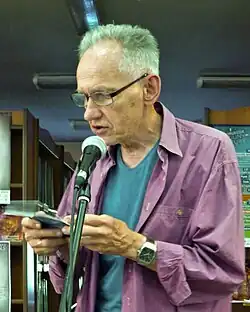 He was the guardian of the Świdnica Literary Club Logos.[2] He promotes poets and writers, conducts poetry workshops, and provides introductions to the volumes of other poets. He translates Czech poets.[6] He is a founding member of the Polish Writers Association.[7] In the Kłodzko Land, he organized literary meetings as part of the Literary University. In the summer of 1999, he conducted a Literary Retreat on the Biała Lądecka river. From 1999 to 2000, he was the editor of the regional-artistic magazine Stronica Śnieżnicka published by the Union of Śnieżnickie Municipalities.[3][7][2][4]
