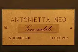 - ^ "Venerable Antonietta Meo". Vatican City. December 20, 2007. Retrieved June 5, 2022.