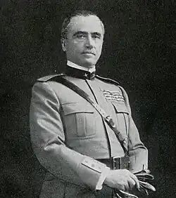 Initially an opponent of Fascism, he changed his mind after the union between fascists and nationalists in 1923, and owing to the persuasion by his friends Luigi Federzoni and Biagio Pace. He then ran at the 1924 elections, together with liberals such as Vittorio Emanuele Orlando, in the Fascist list, and was elected again to the Chamber of Deputies. Mussolini, who saw him as a general both appreciated by the Army and the king and favourable towards Fascism, immediately appointed him Minister of War, replacing Armando Diaz, whose health was deteriorating. He held office from 30 April 1924 to 4 April 1925. During his tenure Di Giorgio defended the autonomy of the Army, forbade officers from becoming involved in politics and tried to limit the role of the MVSN; at the same time, he supported Mussolini during the political crisis sparked by the murder of Giacomo Matteotti, even providing the MVSN with a hundred thousand rifles.[24][25][26][27]