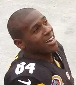 Using a pick received in a trade with the Arizona Cardinals, the Pittsburgh Steelers selected him in the sixth round with the 195th overall pick in the 2010 NFL draft.[56] He was the 22nd of 27 wide receivers selected in the draft, and the second by the Pittsburgh Steelers behind Emmanuel Sanders.[56] He picked the jersey number 84, which he explained: "Eight times four is 32. Thirty-two teams looked past me, even the Steelers. So every time I go out there it's a little added motivation."[57]