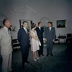 ![]() Meeting with US President John F. Kennedy and Prince Juan Carlos I at the Oval Office, August 1962. Díaz-Cañabate is second from left. | |