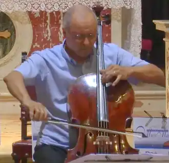 He usually played a Matteo Goffriller cello from 1710, and also a cello by Fabrice Girardin, and an instrument by Luiz Amorim and Filippo Fasser.[2]