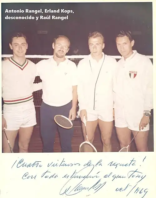 Antonio Rangel was part of the first Mexican team that competed in the Thomas Cup (American zone) and that was defeated by Japan in February 1964 (0-9).[1][9] In February 1967, he competed for the second time with the Mexican team that was eliminated by Canada in the semi-finals of the zone; Antonio Rangel lost against the Canadian champion, Wayne Macdonnell: 12-15, 15-6 y 15-8.[10] In men's doubles, he played together with Oscar Luján, against the brothers Ed and Rolf Paterson and lost: 15-5 y 15-6.[10] In 1970, Antonio Rangel participated in the Thomas Cup for the last time as member of the team that was coached by the former Indonesian player Tan Joe Hok (winner of the All England in 1959), this time Mexico lost against the United States (2-7), in San Diego, California.