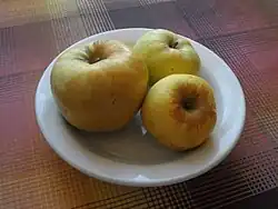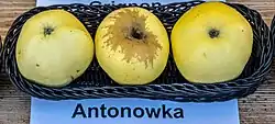 Antonovka (Russian: Антоновка, Polish: Antonówka) is a group of late-fall or early-winter apple cultivars with a strong acid flavor that have been popular in Russia, including during Tsarist and Soviet times, as well as in Poland and Belarus.[2] The most popular Russian variety is the Common Antonovka (Антоновка обыкновенная), from which other cultivars are derived.