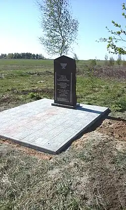 ![]() A monument to the residents of Antonovka (mainly Jews) who were killed in 1941–1943. The monument was erected in 2004 by the local secondary school at the site of the former Jewish cemetery. The Jews were killed at another location. | |