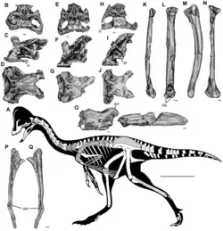 Anzu (named for Anzû, a bird-like daemon in Ancient Mesopotamian religion) is a monospecific genus of caenagnathid dinosaur from North Dakota, South Dakota, and Montana that lived during the Late Cretaceous (upper Maastrichtian stage, 67.2-66.0 Ma) in what is now the Hell Creek Formation.[1] The type and only species is Anzu wyliei, known from numerous skeletons that preserve cranial and postcranial elements.[1] It was named in 2014 by Matthew C. Lamanna, Hans-Dieter Sues, Emma R. Schachner, and Tyler R. Lyson.[1]