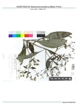 Aphelandra schottiana is a species of flowering plant in the family Acanthaceae. It is a shrub native to eastern and southern of Brazil.[1] This plant is cited in Flora Brasiliensis by Carl Friedrich Philipp von Martius.