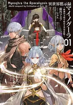 Apocalypse Bringer Mynoghra: World Conquest Starts with the Civilization of Ruin (Japanese: 異世界黙示録マイノグーラ~破滅の文明で始める世界征服~, Hepburn: Isekai Mokushiroku Mainogūra: Hametsu no Bunmei de Hajimeru Sekai Seifuku) is a Japanese light novel series written by Fehu Kazuno and illustrated by Jun. It began serialization as a web novel published on the user-generated novel publishing website Shōsetsuka ni Narō in November 2017. It was later acquired by Micro Magazine who began publishing it under their GC Novels light novel imprint in November 2019. A manga adaptation illustrated by Yasaiko Midorihana began serialization on Kadokawa's ComicWalker manga website in March 2020. An anime television series adaptation produced by Maho Film premiered in July 2025.