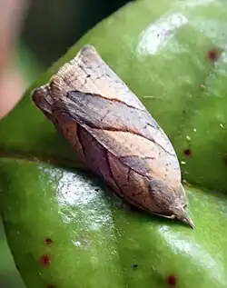 The larvae of this species are pale green with a brown head and when mature are up to 20 mm in length.[3]