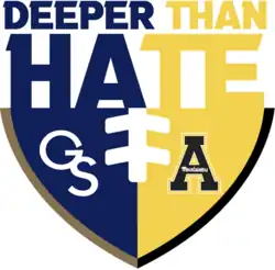 The Appalachian State–Georgia Southern football rivalry, also known as Deeper Than Hate, is a college rivalry between the Mountaineers of Appalachian State University in Boone, North Carolina, and the Eagles of Georgia Southern University in Statesboro, Georgia.[1][2] Despite being located in separate states, the two universities have similar academic profiles, both having developed from teachers' colleges, and having enrollments of approximately 20,000. In addition, both Appalachian and Georgia Southern historically held a very strong presence during their time in the Division I Football Championship Subdivision, having combined to win nine national championships, four Walter Payton Awards, and two Buck Buchanan Awards. On March 27, 2013, both schools were invited to join the Sun Belt Conference of the Football Bowl Subdivision (FBS) beginning in 2014.[3]