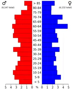 23.70% of the people are under the age of 18, 7.80% from 18 to 24, 25.10% from 25 to 44, 23.50% from 45 to 64, and 20.00% 65 or older. The median age was 41 years. For every 100 females there were 91.50 males. For every 100 females age 18 and over, there were 89.50 males.