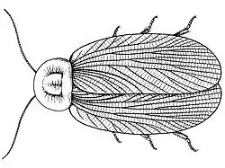 Apthoroblattina is an extinct genus of primitive cockroaches from the Carboniferous period. Fossils of the genus have been found in England, Wales, the United States, and Russia.[1] The paratype specimen for the species A. johnsoni is recorded to have a total length of 43 mm (1.7 in) and a width of 38 mm (1.5 in),[2] while the type specimen of A. sulcata is noted to have been up to 45 mm (1.8 in) in length and 25 mm (0.98 in) in width if complete.[3]
