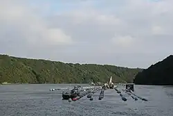 Aquaculture in the United Kingdom is dominated by salmon farming (mostly in Scotland), then by mussel production with trout being the third most important enterprise.[1] Aquaculture in the United Kingdom[note 2] represents a significant business for the UK, producing over 200,000 tonnes (220,000 tons) of fish whilst earning over £700 million in 2012 (€793 million).[note 3]