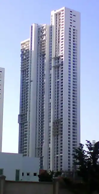 The Aqualina Tower is a residential skyscraper in Punta Pacífica, Panama City. The building is 210 meters tall and has 63 floors. Its construction was carried out by Fajardo Moreno Arquitectos and Btesh & Virzi Promoción Inmobiliaria, which began in 2005 and finished in 2007. It is one of the tallest buildings in the city, surpassing the 200 meters between the other skyscrapers.
