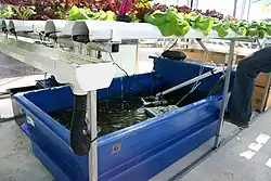 - ^ a b Naegel, Ludwig C.A. (1977). "Combined production of fish and plants in recirculating water". Aquaculture. 10 (1): 17–24. Bibcode:1977Aquac..10...17N. doi:10.1016/0044-8486(77)90029-1.