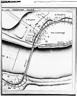 Aqueduct is a hamlet in the Town of Niskayuna, Schenectady County, New York, United States. Its center is at the south end of the bridge of New York State Route 146 (Balltown Road) over the Mohawk River, that connects Schenectady County to the south and Saratoga County to the north. It was formerly a transportation hub. Alexander's Bridge across the Mohawk (see the map) antedated the Aqueduct. A new Route 146 steel highway bridge, with board pavement, parallel to the Aqueduct was built in the early 20th century.[1] A Schenectady trolley line ended there, the line also serving Luna Park, just over the river in Rexford. There was, in Aqueduct, a staffed station of the Troy & Schenectady Railroad, which operated from 1841 to 1932.