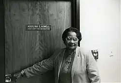 Aquilina Howell's exemplary career as a social studies, Spanish and English teacher, guidance counselor, educational supervisor and administrator spanned over forty-three years where she provided outstanding leadership and guidance to students, teachers and administrators. She settled disputes among school administrators, advised civic leaders, calmed and successfully negotiated with angry parents who did not want their children to attend a Black school, and guided the Tallahassee community through the often thorny path of school integration in the 1960s and 1970s.[2] At her retirement, she held the distinguished honor of being the first female ever to be appointed as Assistant Superintendent in the Leon County School District.[3]