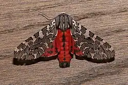 - ^ Lotts, Kelly & Naberhaus, Thomas (2017). "Painted Tiger Moth Arachnis picta Packard, 1864". Butterflies and Moths of North America. Retrieved August 9, 2019.