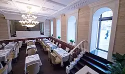 Soon after its opening, the restaurant quickly gained a reputation for its quality and became popular among the Soviet elite. Due to high prices and strict face control, Aragvi was largely considered inaccessible to the average citizen.[2] After the fall of the Soviet Union, it became increasingly associated with organized crime. The restaurant was closed for renovations in the early 2000s, but its reopening was delayed due to changes in management as well as due to the discovery of archeological remains from the 17th century.[3] The Government of Moscow has assumed responsibility for the building's future. In 2016, the restaurant was reopened by Armenian businessmen Samvel Karpetyan and Gor Nakhapetyan after a $20 million renovation.[4] The new menu was expanded to include non-Georgian Caucasian dishes.[5]