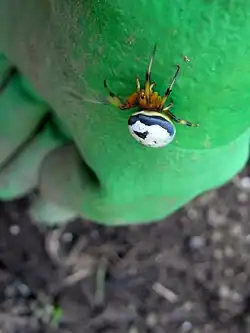 - ^ a b c d Sudhikumar Ambalaparambil (August 31, 2010). "Araneus mitificus". Life Desks: Spiders of India. Archived from the original on March 19, 2012.