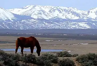 ![]() View of the Arapaho National Wildlife Refuge, looking out over the valley of the Illinois River from State Highway 14. The Park Range is in the background. | |